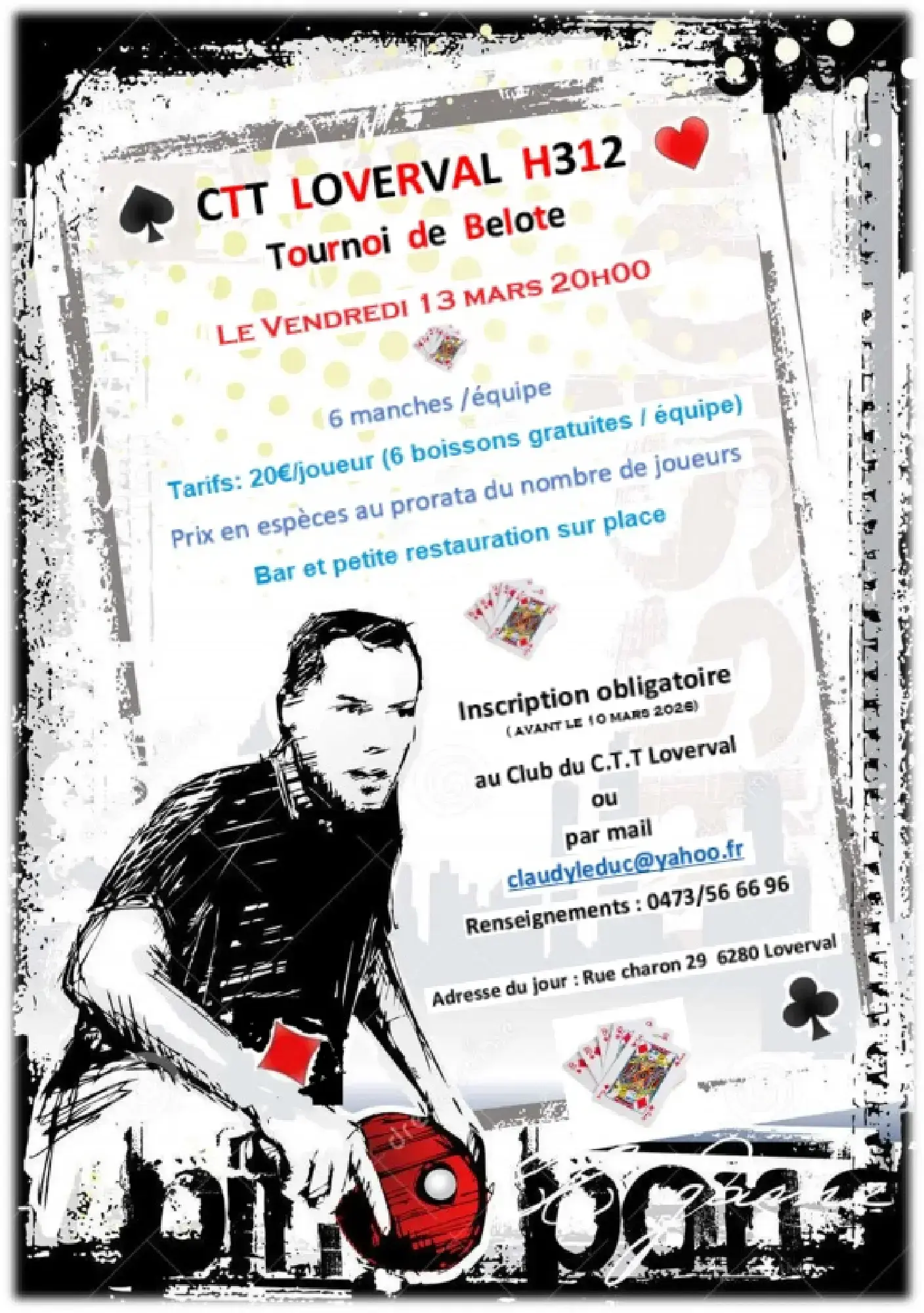 Tournoi belote du 13 mars 2026 au CTT Loverval